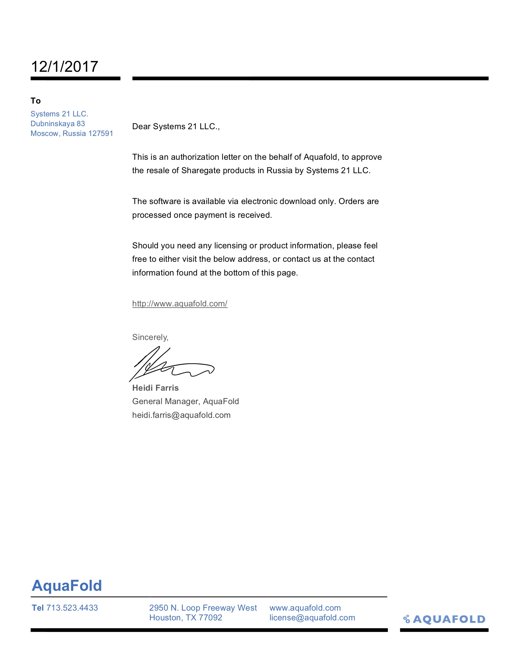 Узнать цены и условия поставки на продукты компании AquaFold, а так же получить консультацию по лицензированию Вы можете отправив нам запрос.
