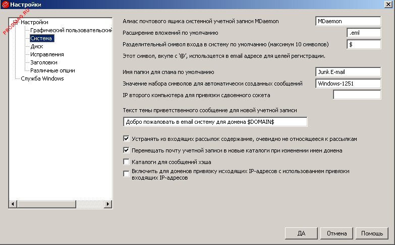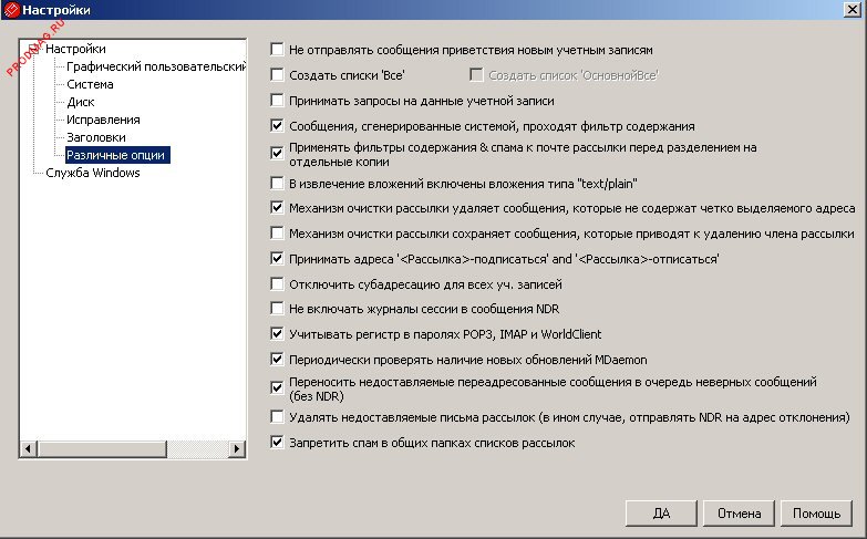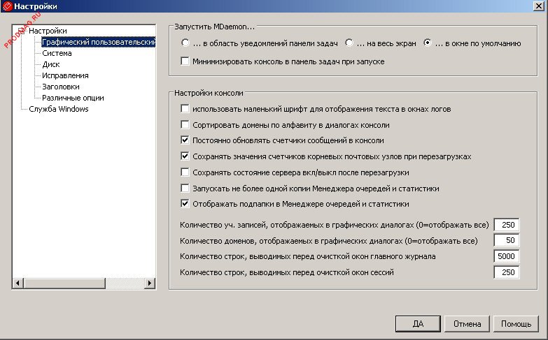 1. Настройки. Графический пользовательский интерфейс. Задает параметры запуска Mdaemon, а также настройки отображений в консоли.