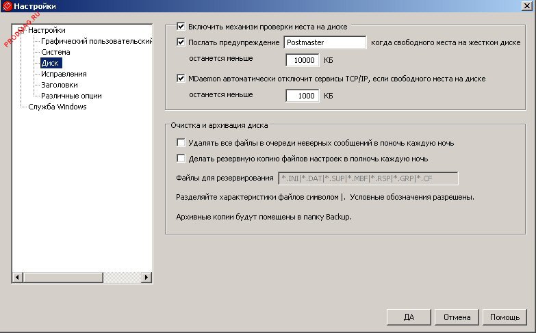 3. Диск. Параметры, задающие слежение за дисковым пространством.