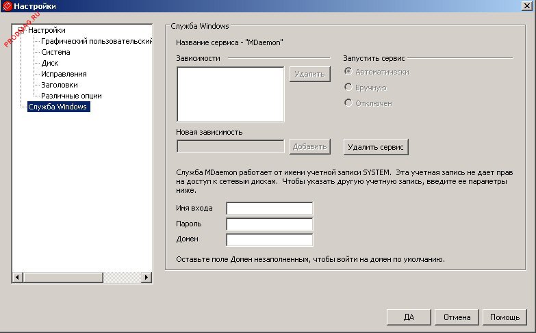 7. Служба Windows. Параметры запуска службы MDaemon.